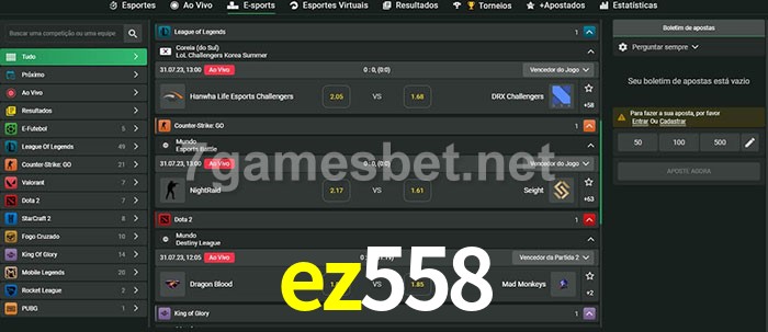O ez558 oferece uma grande seleção de opções de apostas em e-sports com probabilidades competitivas